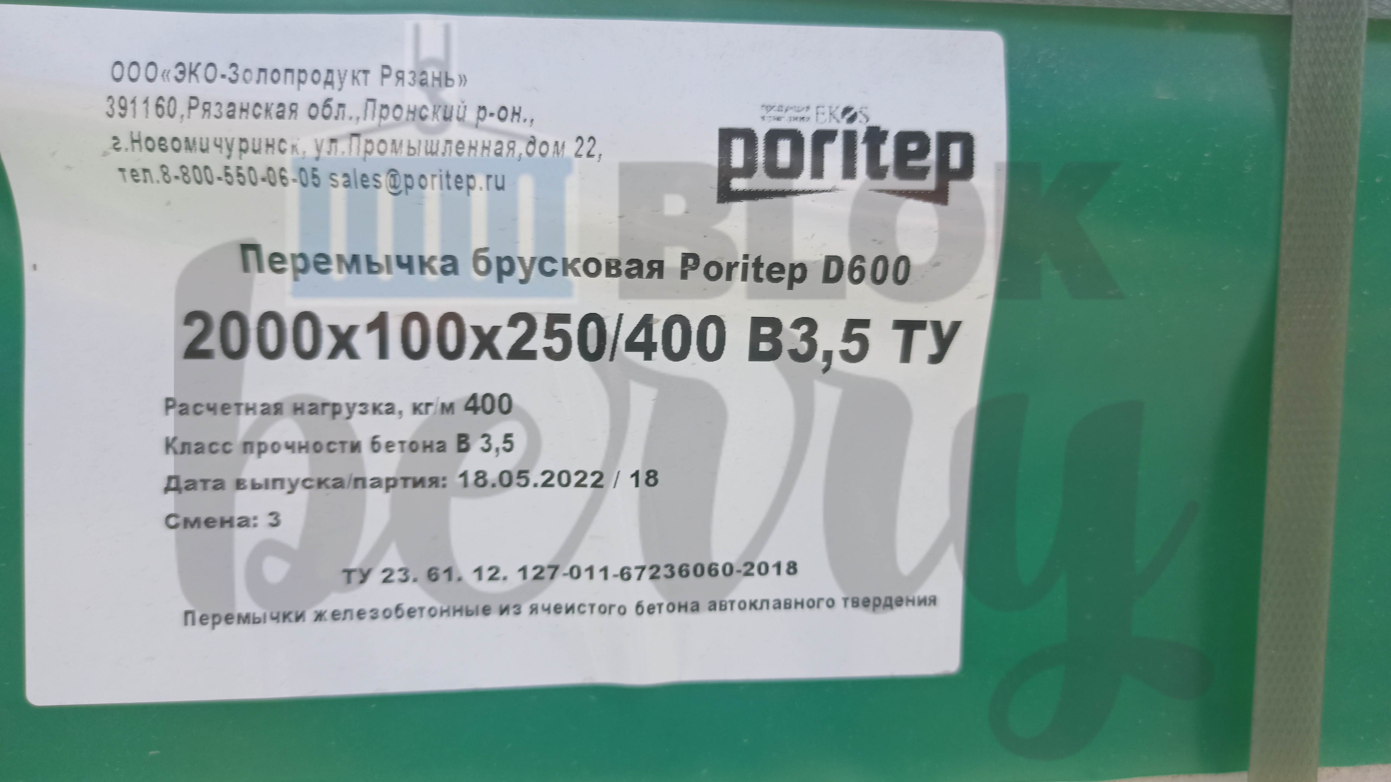 | Марка по плотности, кг/м³ | D600 |